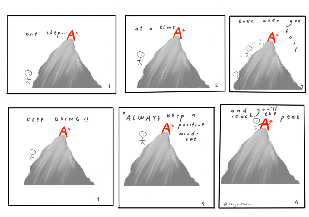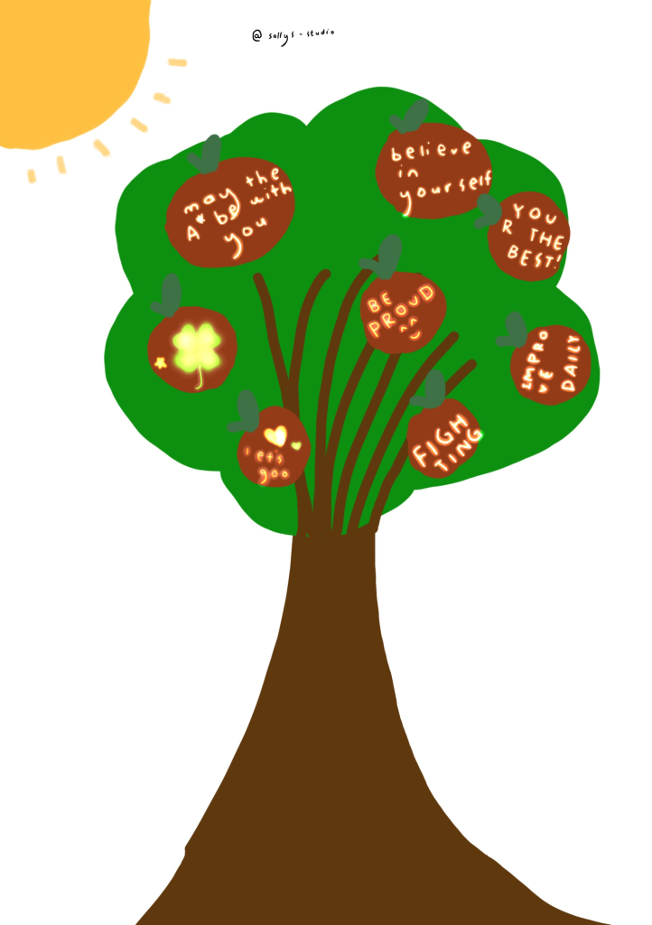 Anyway, for this blog, I self-drew two pictures to helpfully motivate you for your exams. Even if you don’t take them this season, I hope you’ll still get motivated and get ready for future exams! I’m also going to give you some tips that I hope are useful hehe